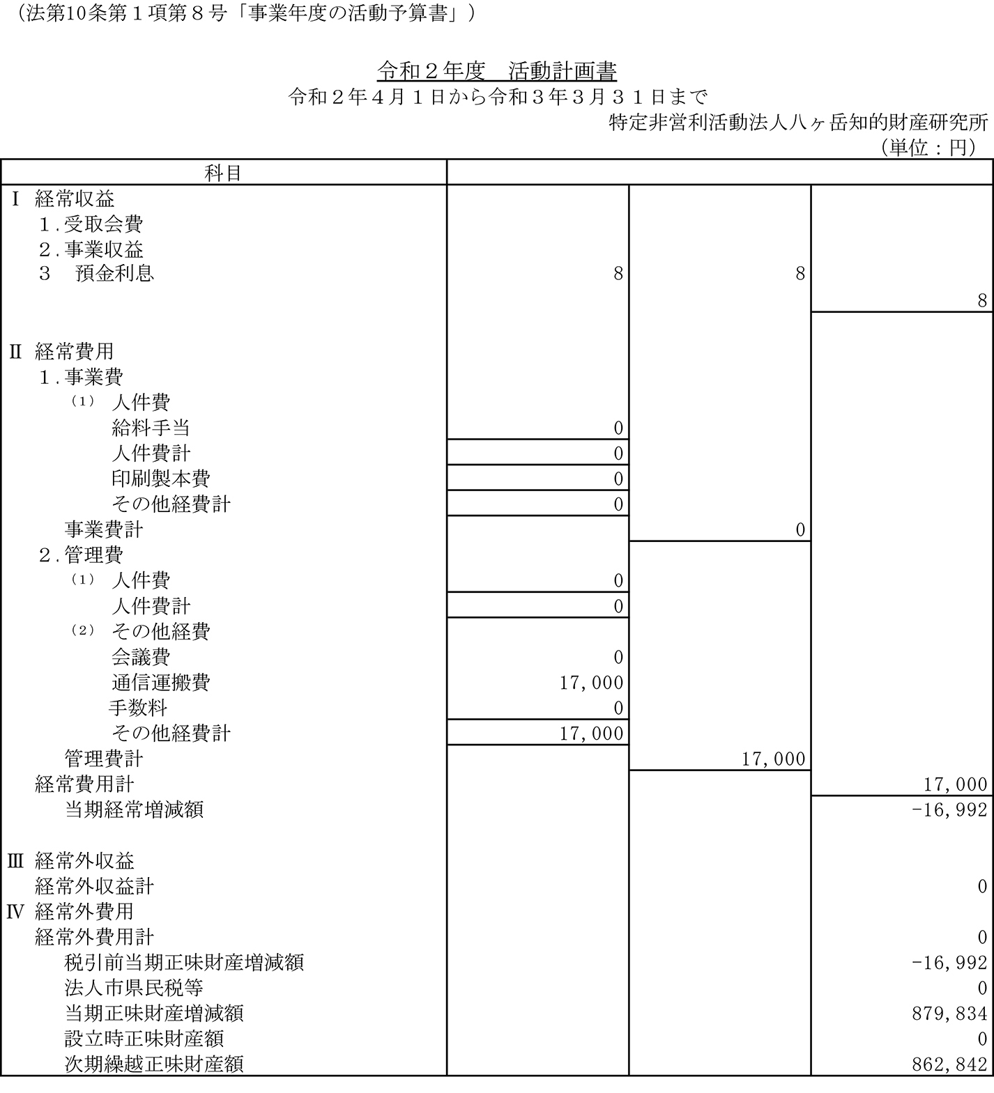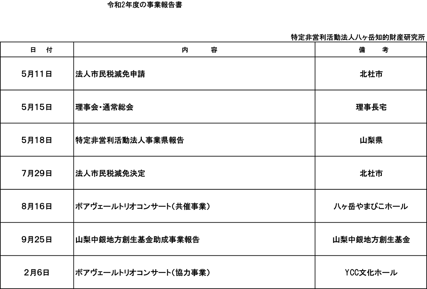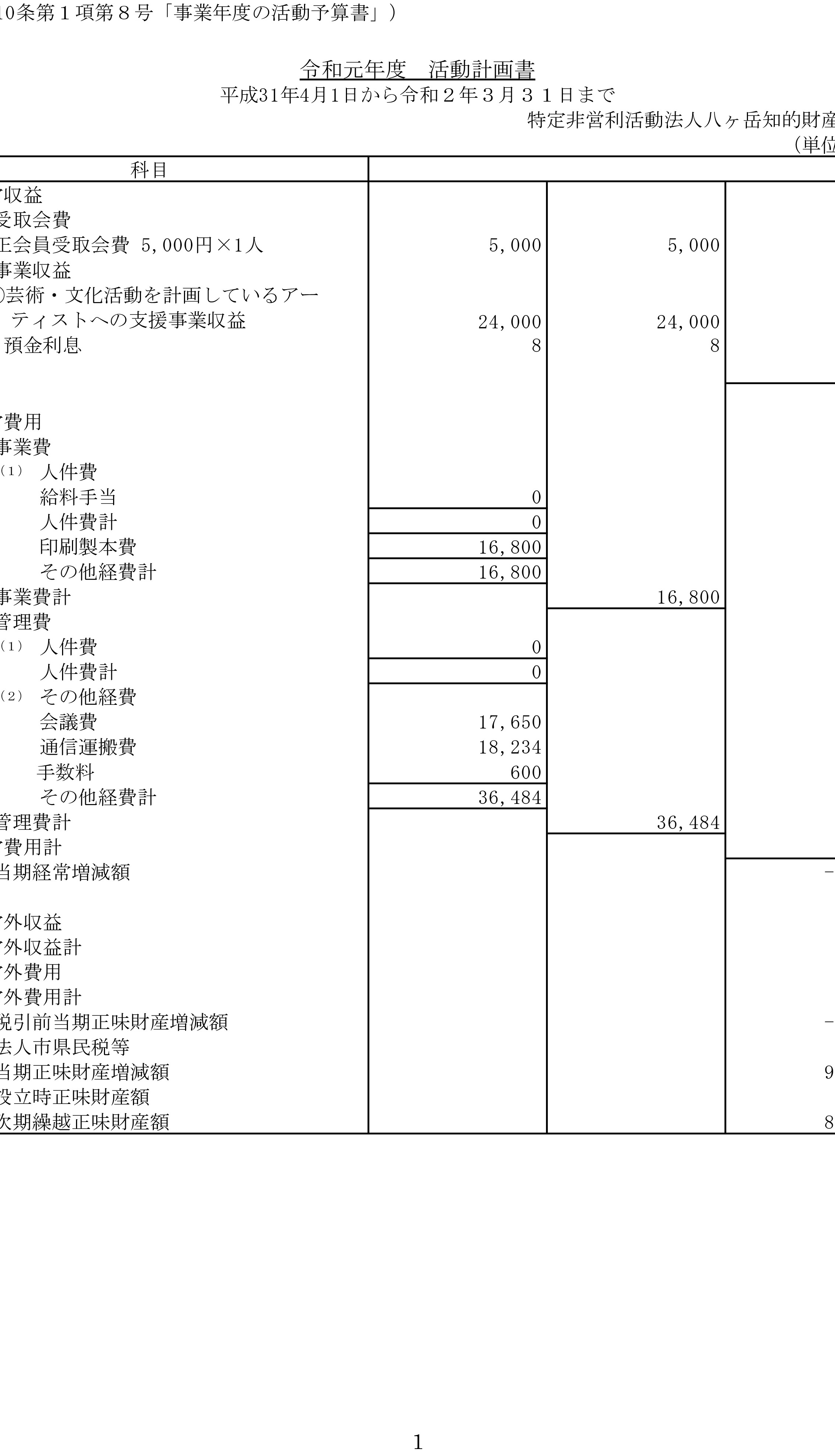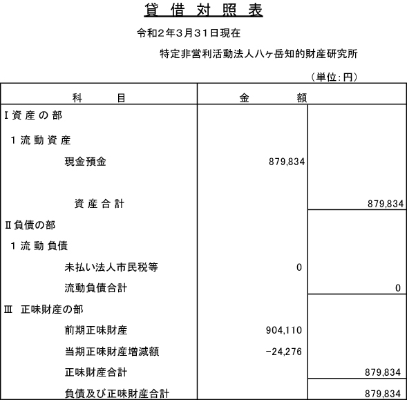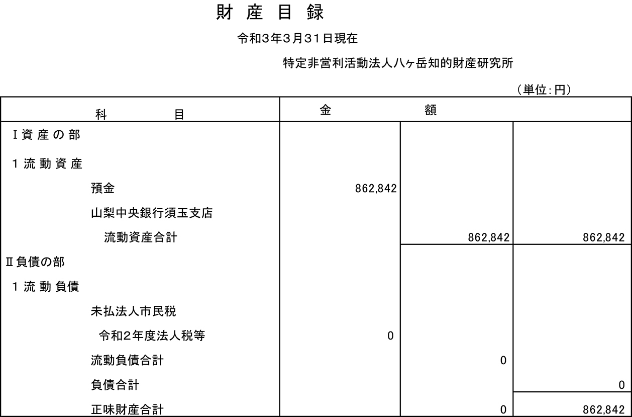 令和2年4月1日〜3年3月31日までの活動計画書令和2年度事業報告書貸借対照表財産目録