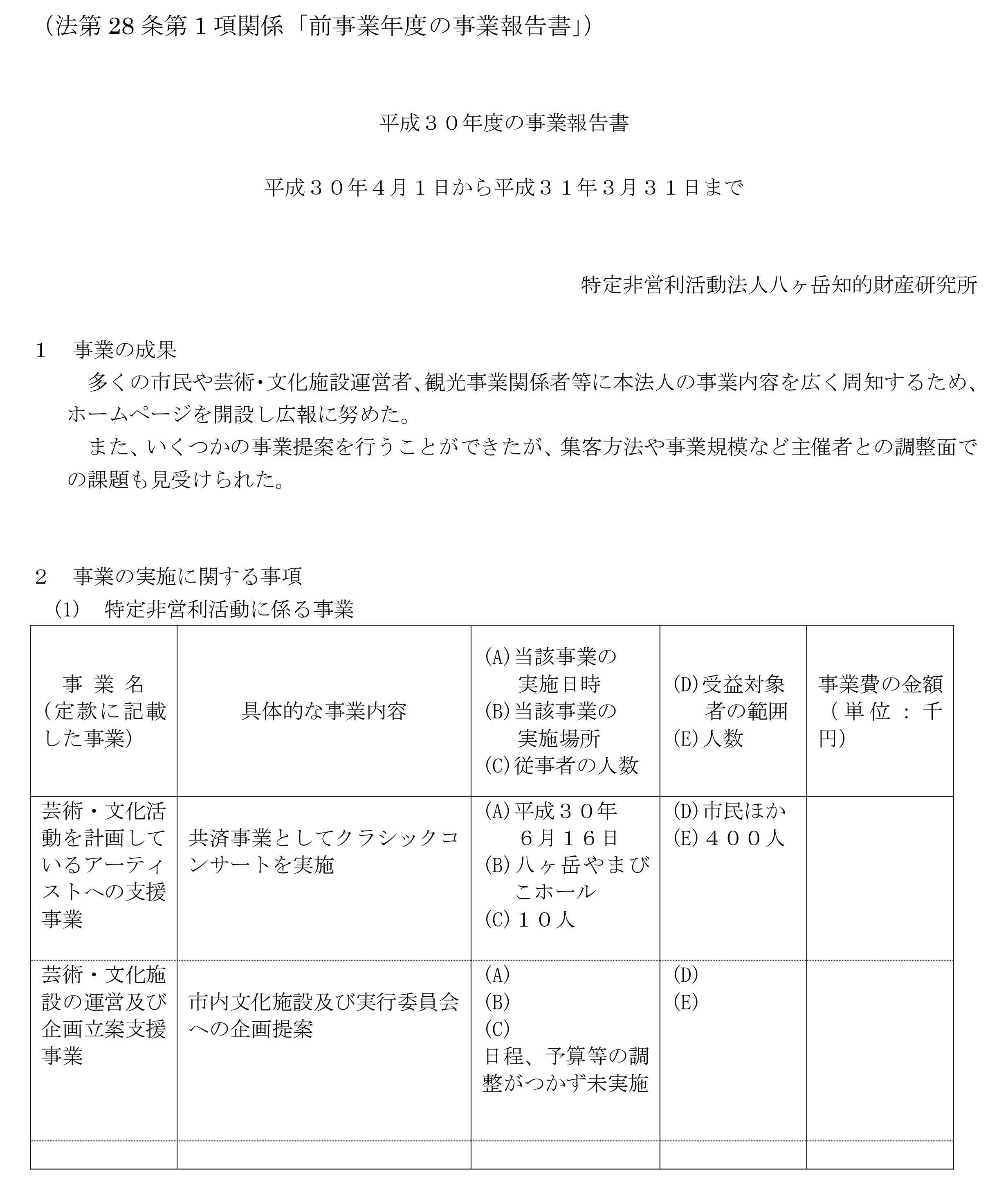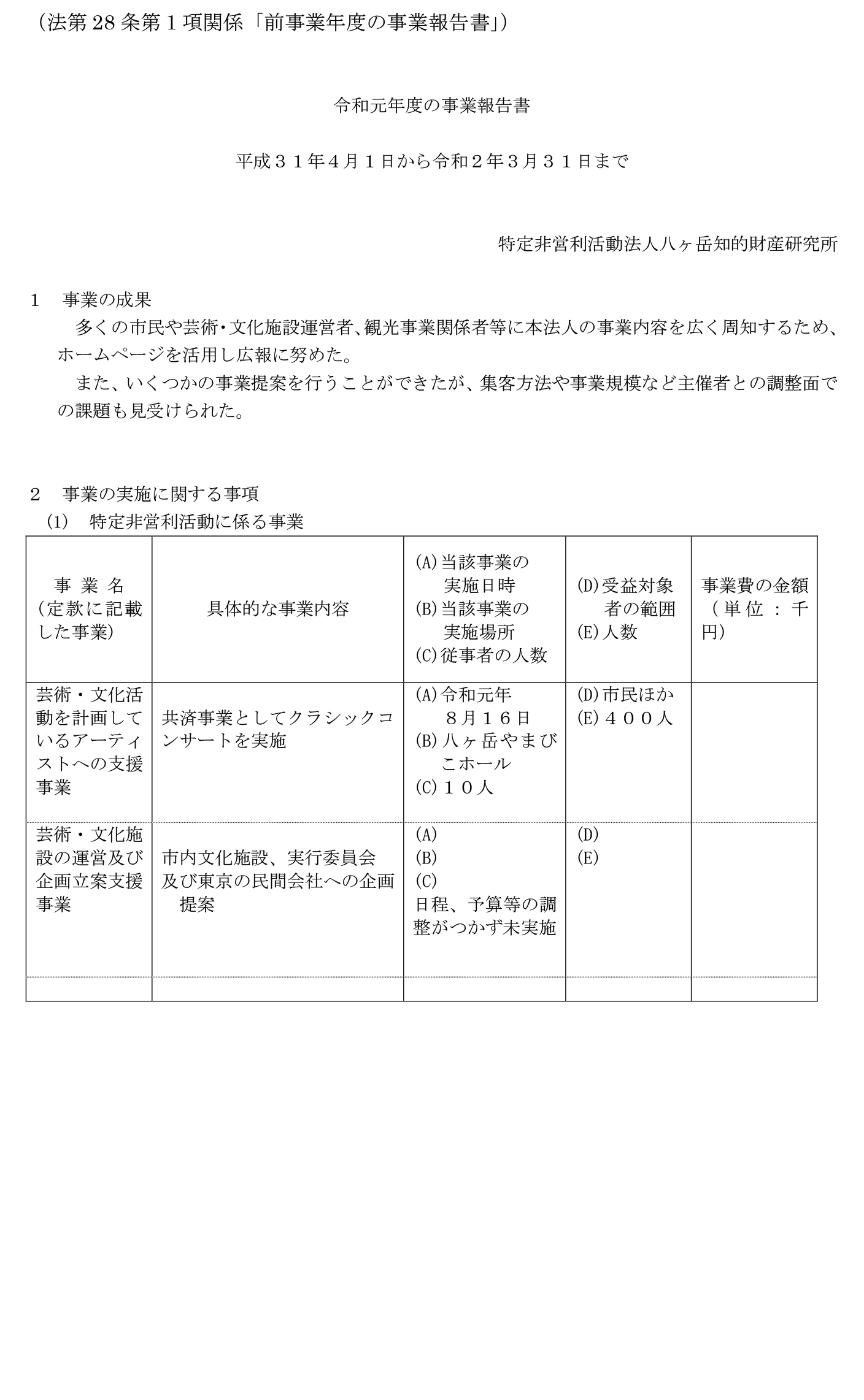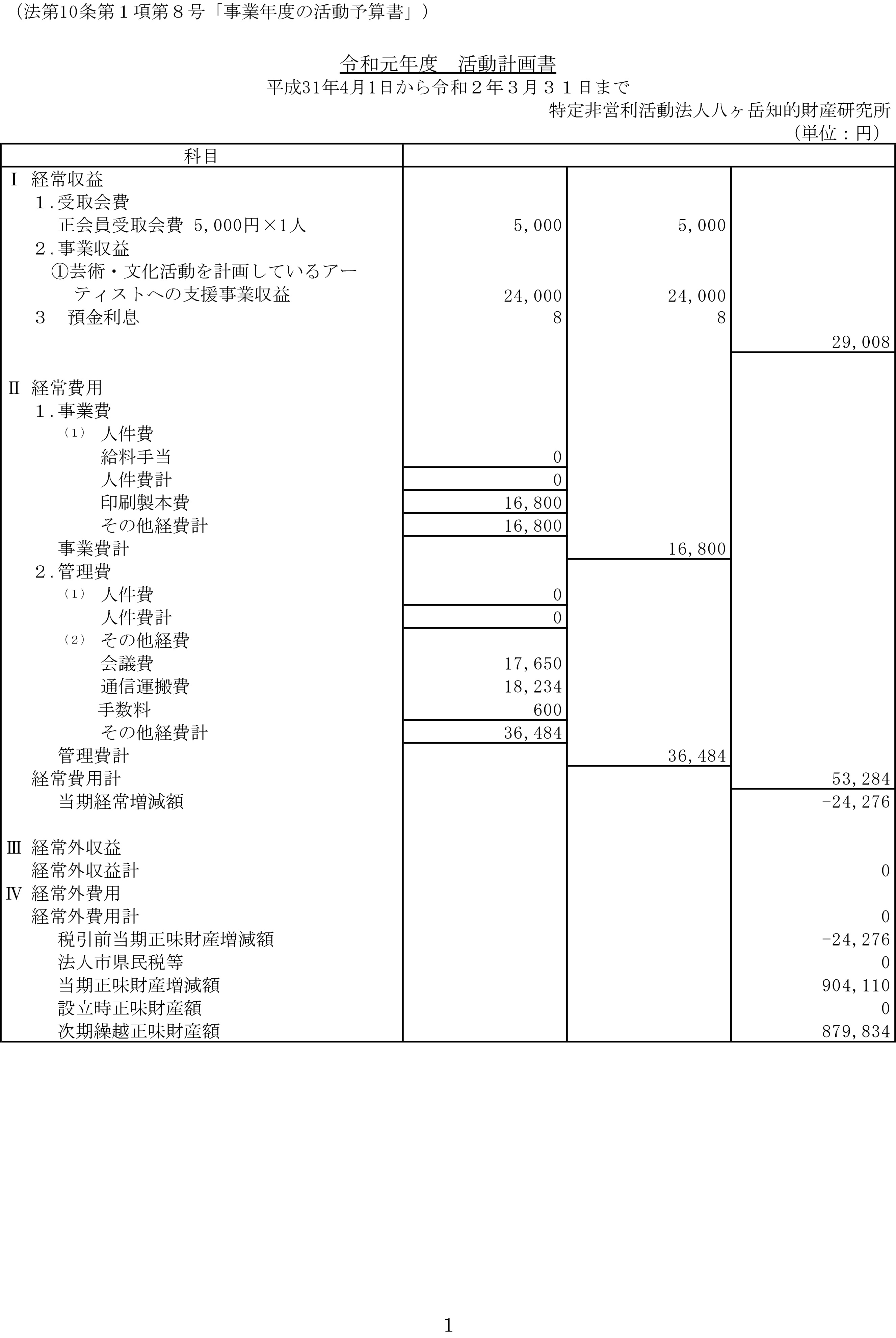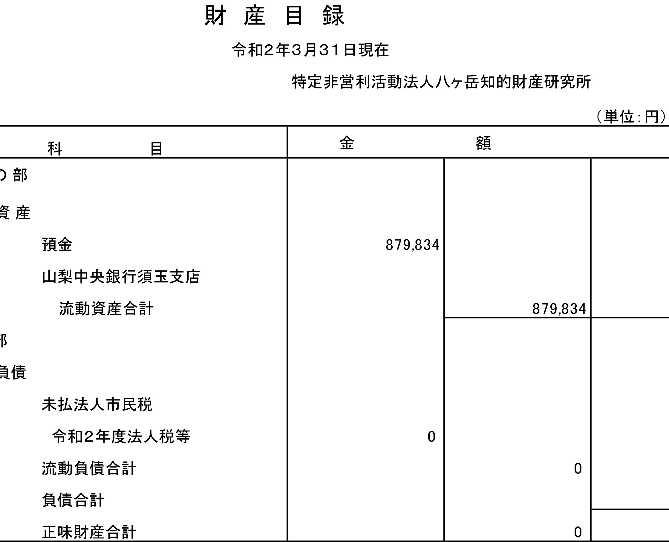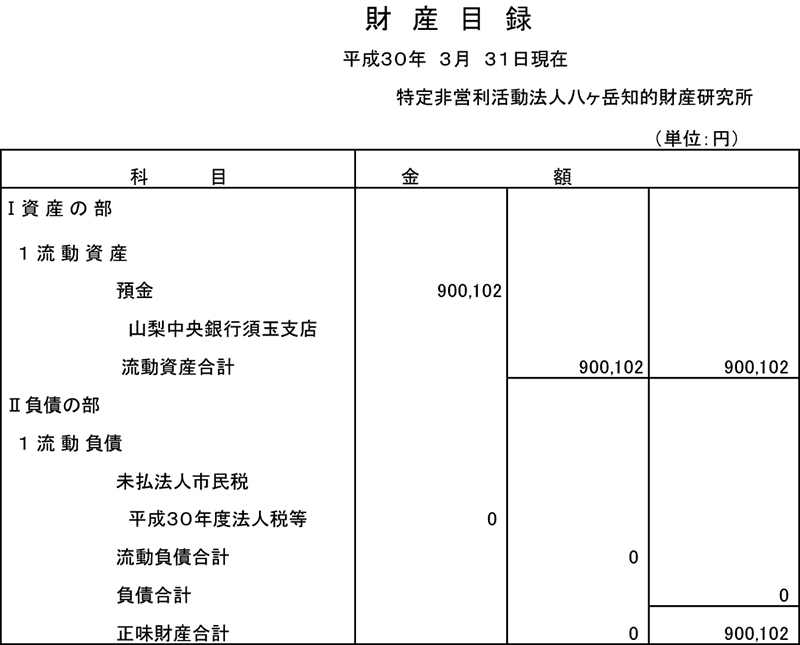 令和2年4月1日〜3年3月31日までの活動計画書令和2年度事業報告書貸借対照表財産目録