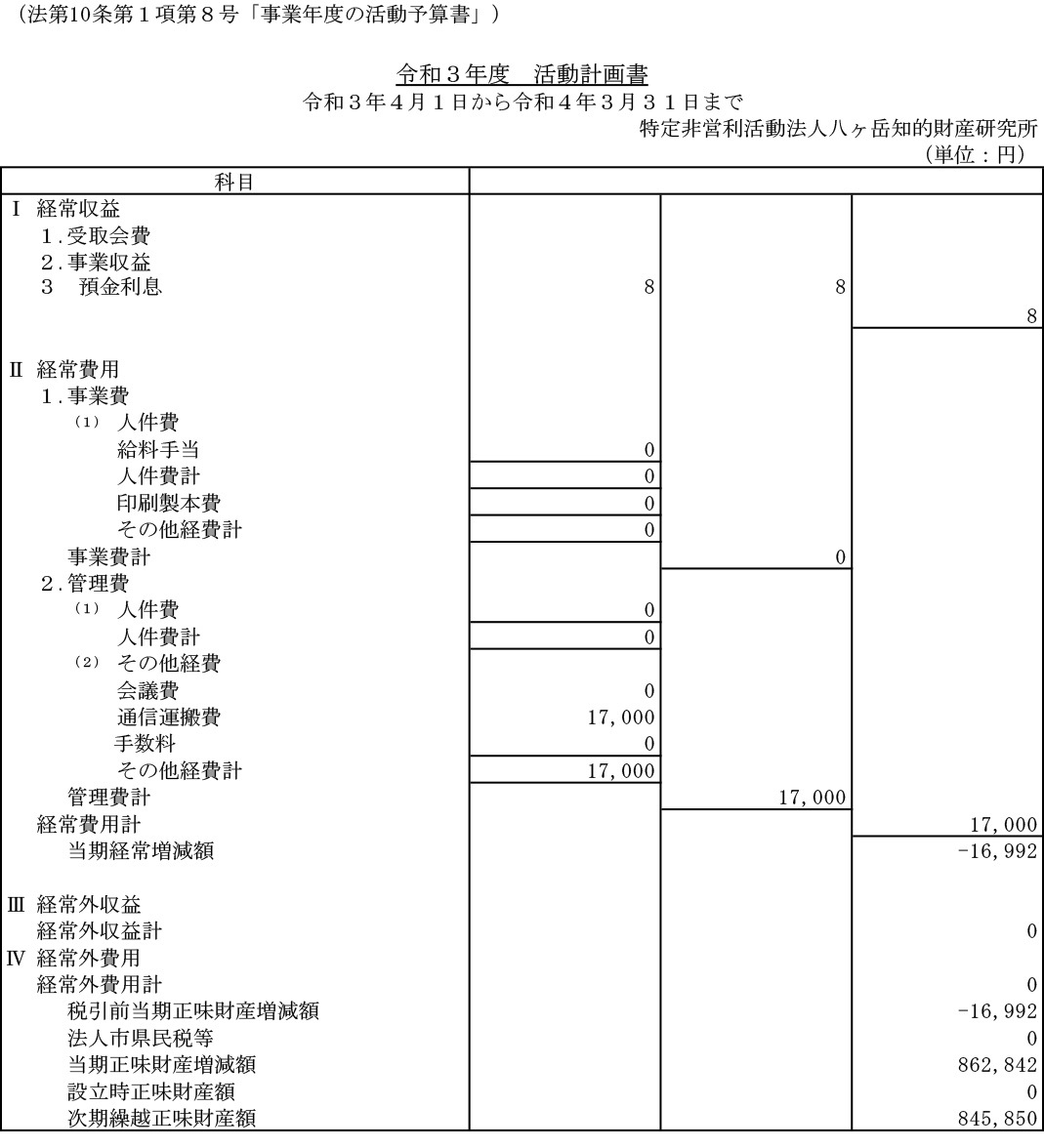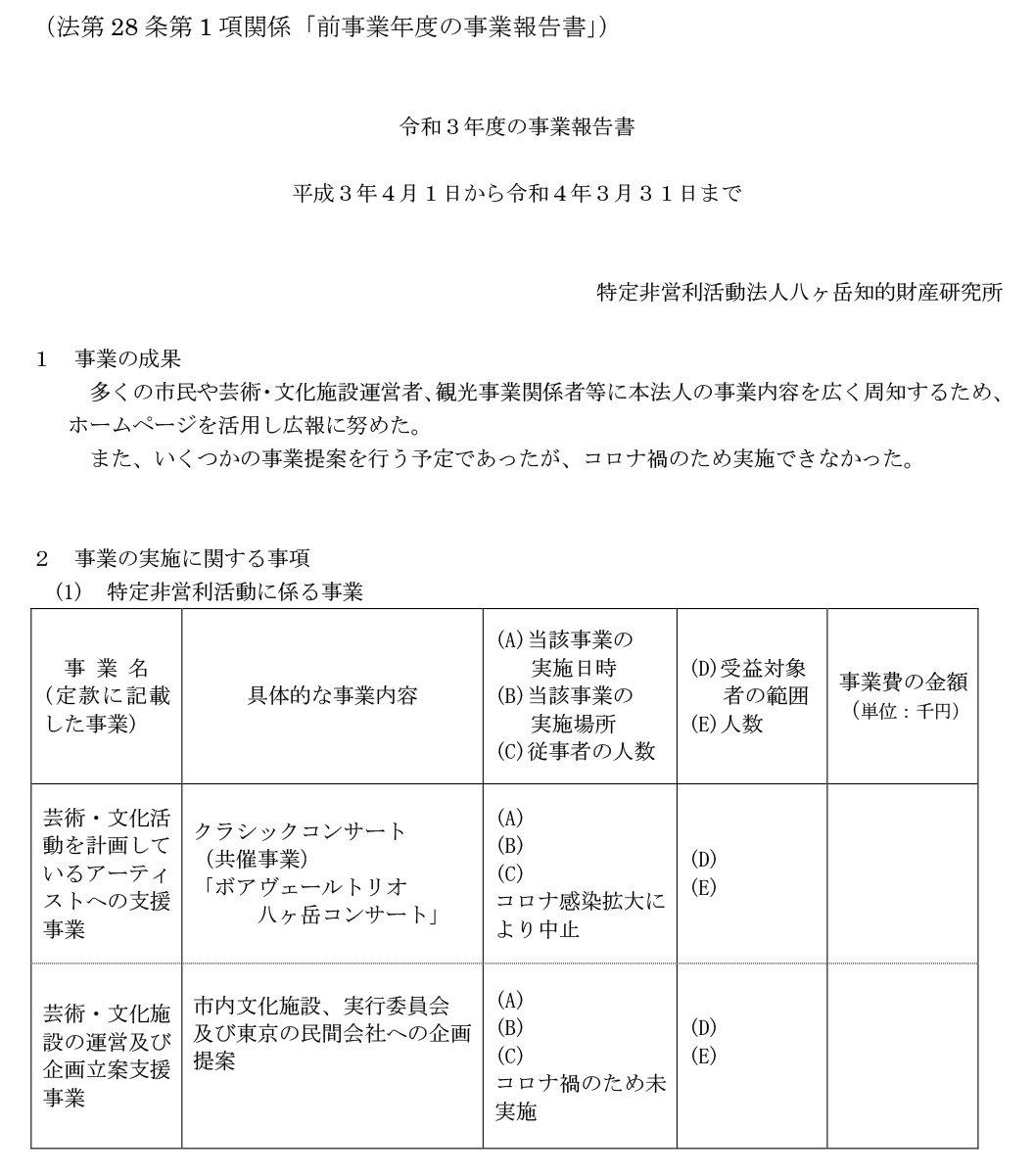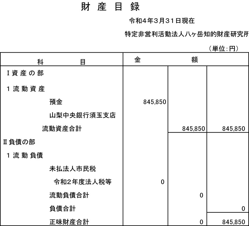 令和3年4月1日〜4年3月31日までの活動計画書令和3年度事業報告貸借対照表財産目録